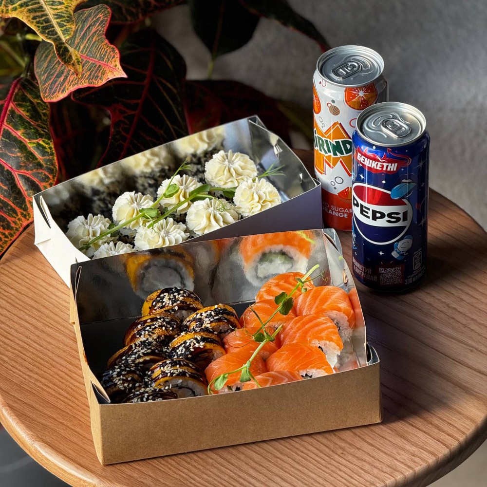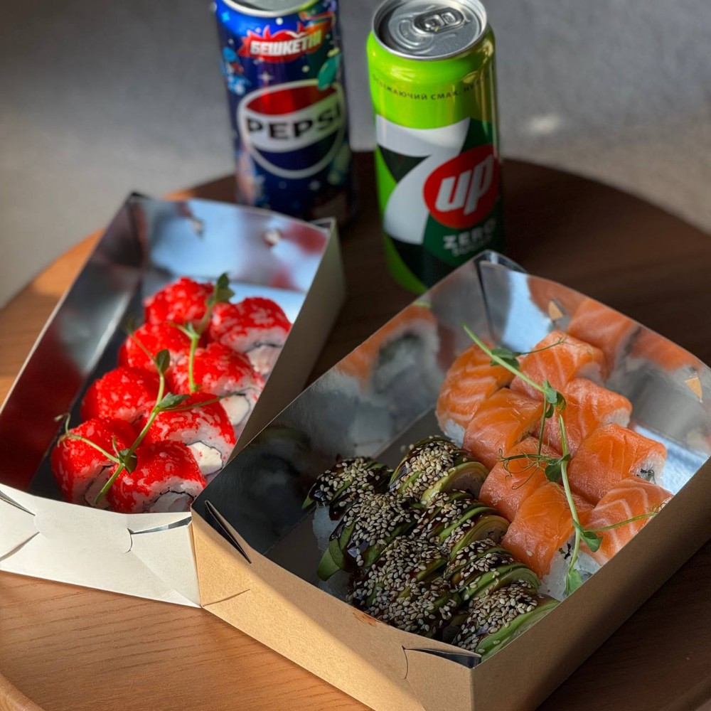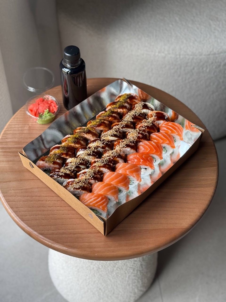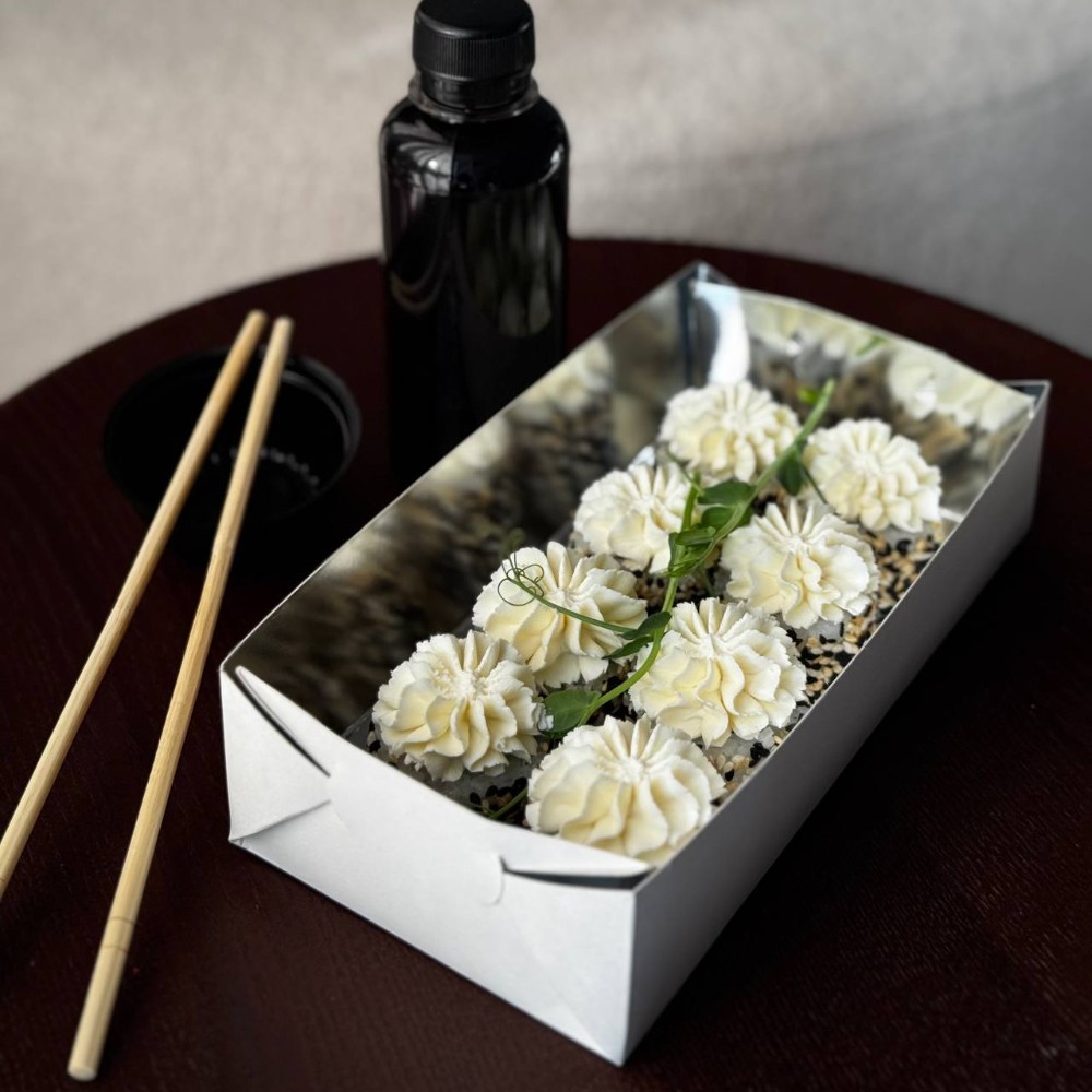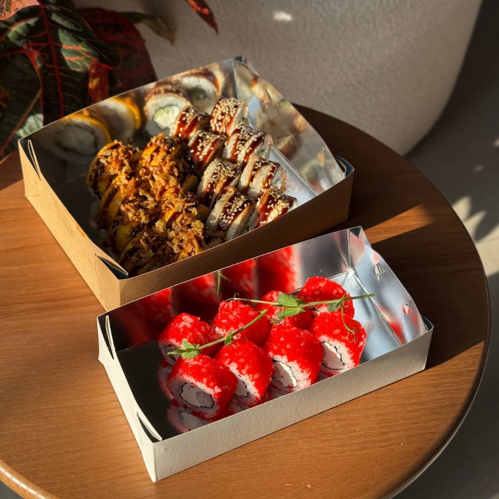 Рис; Вершковий сир; Ікра; Ананас; Креветка; Сирна шапочка; Унагі соус; Кунжут мікс.