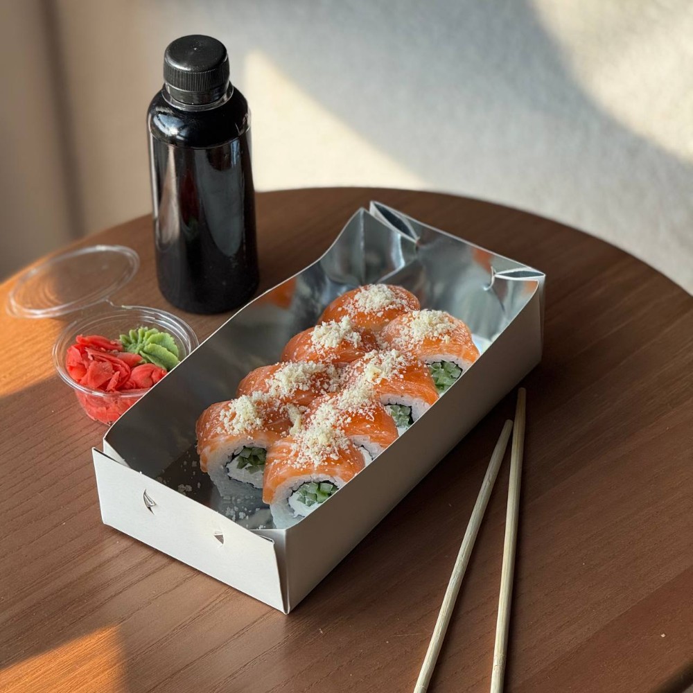 Рис; Вершковий сир; Огірок; Сніжний краб; Ікра; Унагі соус; Кунжут мікс.