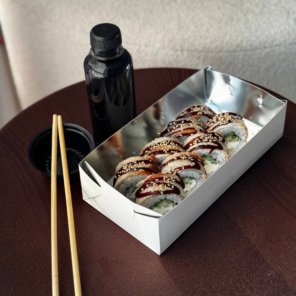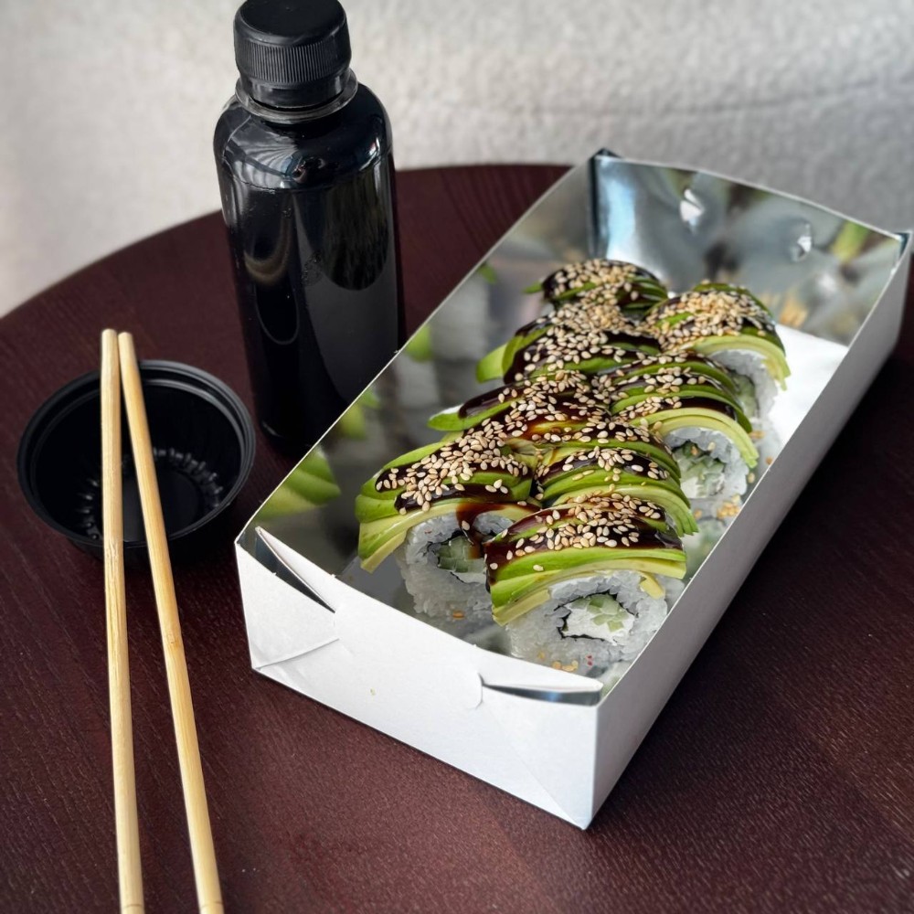 Рис; Вершковий сир; Огірок; Авокадо; Унагі соус; Кунжут білий.