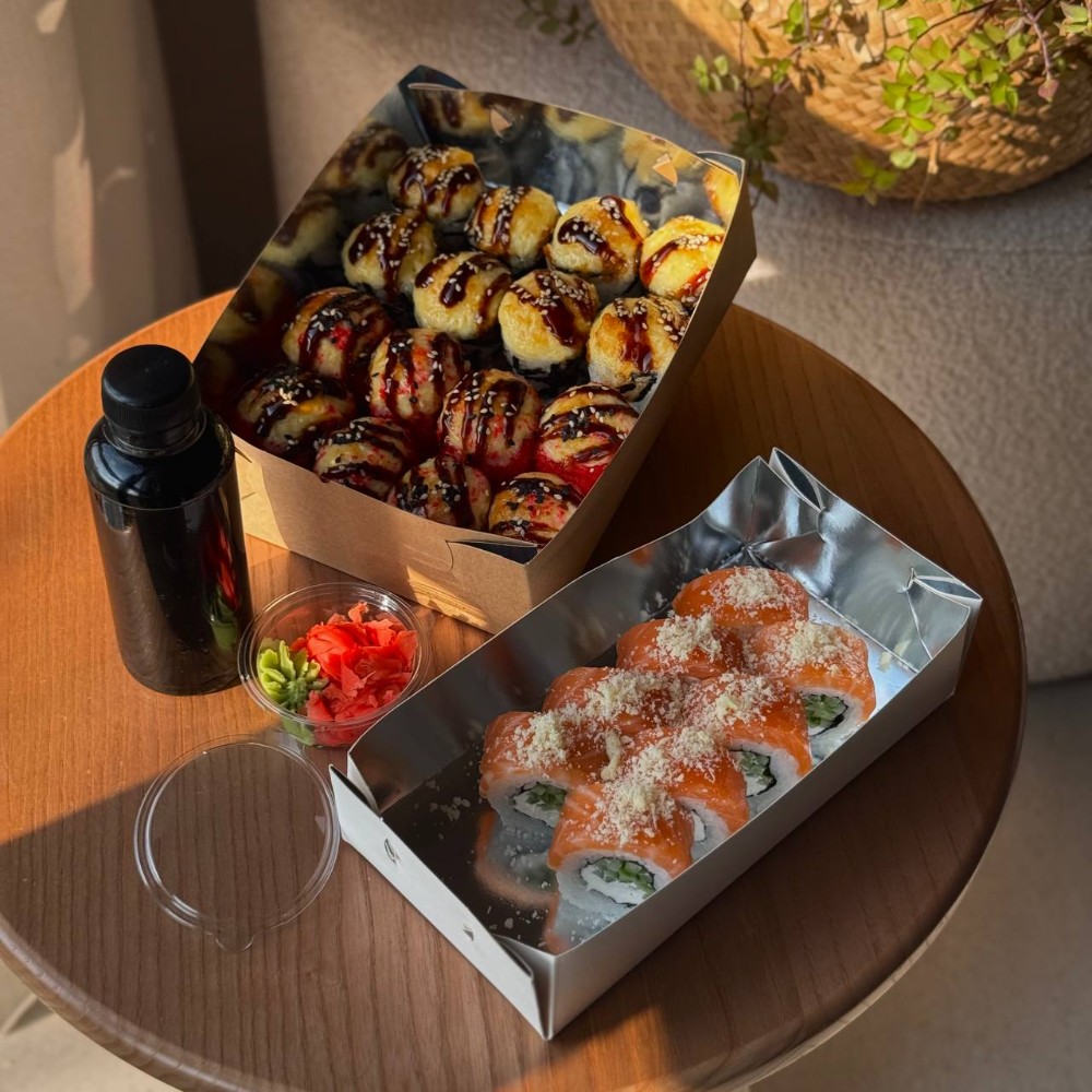 Рис; Вершковий сир; Лосось гриль; Японський омлет тамаго; Кунжут мікс.